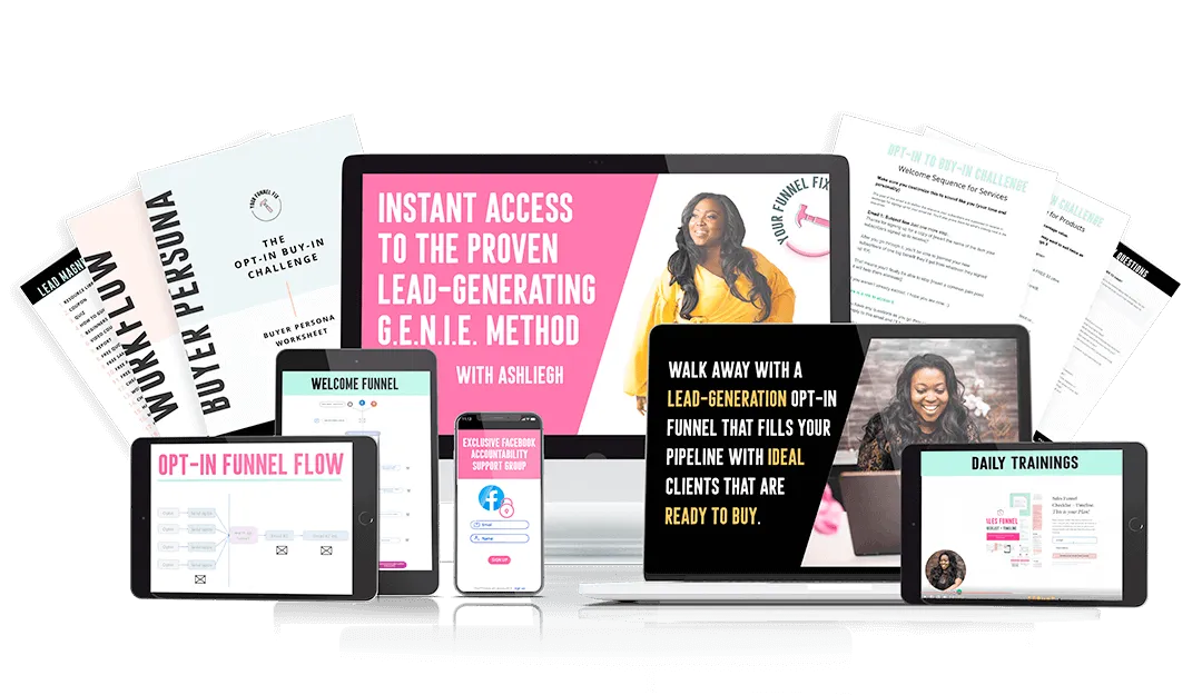 After completing this challenge, you’ll have a beautiful, fully functioning, LEAD-GENERATING opt-in funnel that your ideal audience can’t help but to opt-in to. You will also have a fundamental understanding of a high-functioning marketing funnel while also creating this on-tap, dynamic marketing system of your own, designed to attract qualified leads into converting customers and establish authority and consumer trust with your brand.