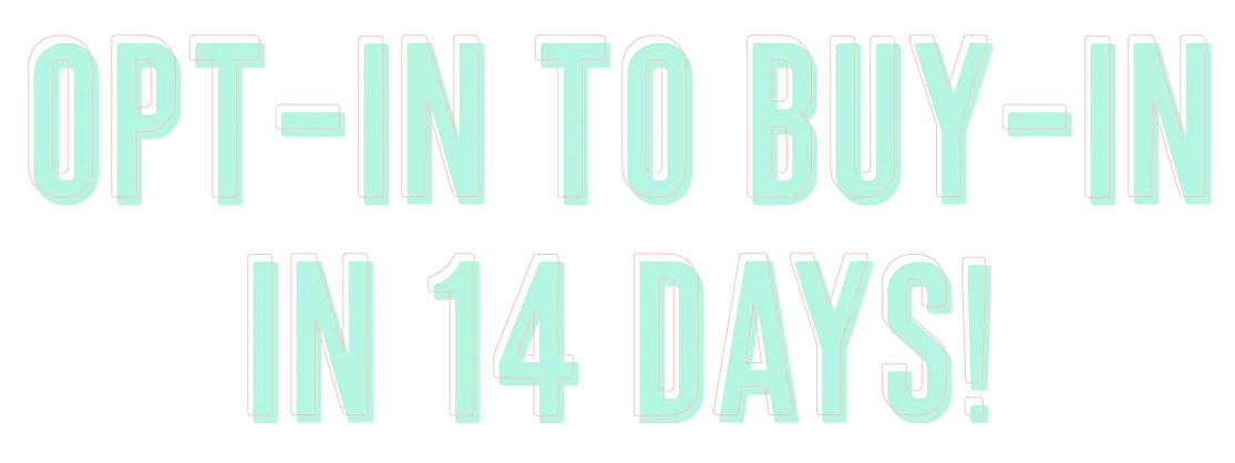 I suggest commiting 2-3 hours weekly. Although you’ll be receiving daily implementation-friendly strategies for the 14-day duration of the challenge, the Opt In To Buy challenge will provide you with the tools necessary to take action immediately. Should you decide to wait to implement the strategies, you’ll have them to use at a later time.